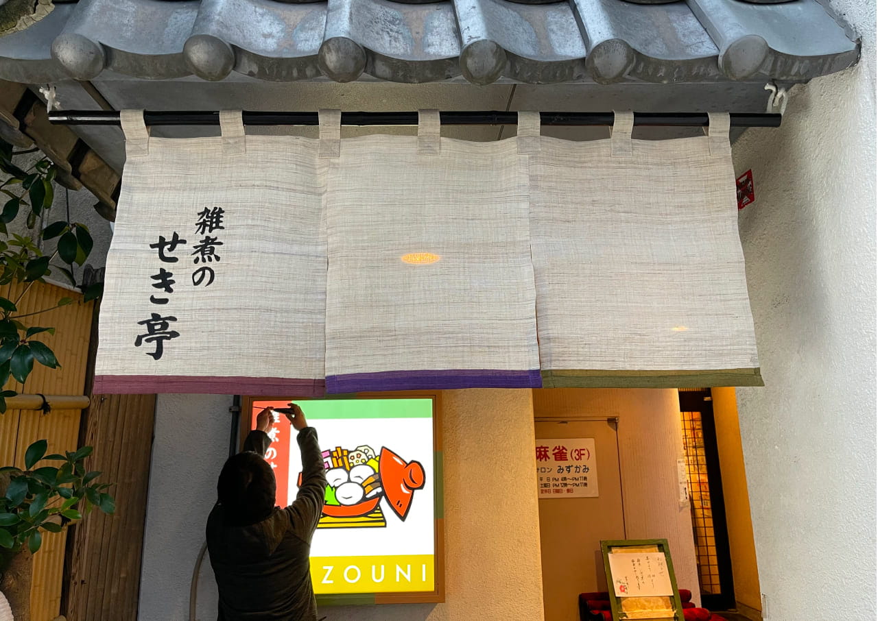雑煮のせき亭(博多)の看板と暖簾のデザイン・施工を担当しました。