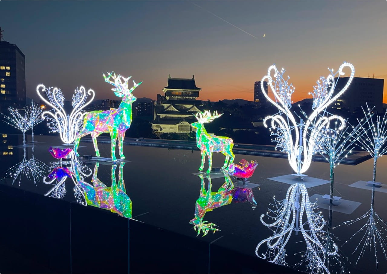 華やかさ、温かさ、ワクワク感─クリスマスシーズンは、空間づくりが集客力を左右する一大イベントです。 私たちは、イルミネーションをはじめとした商業施設の装飾・演出デザインを、コンセプト設計から装飾・広報ツール制作までトータルでご提案します。