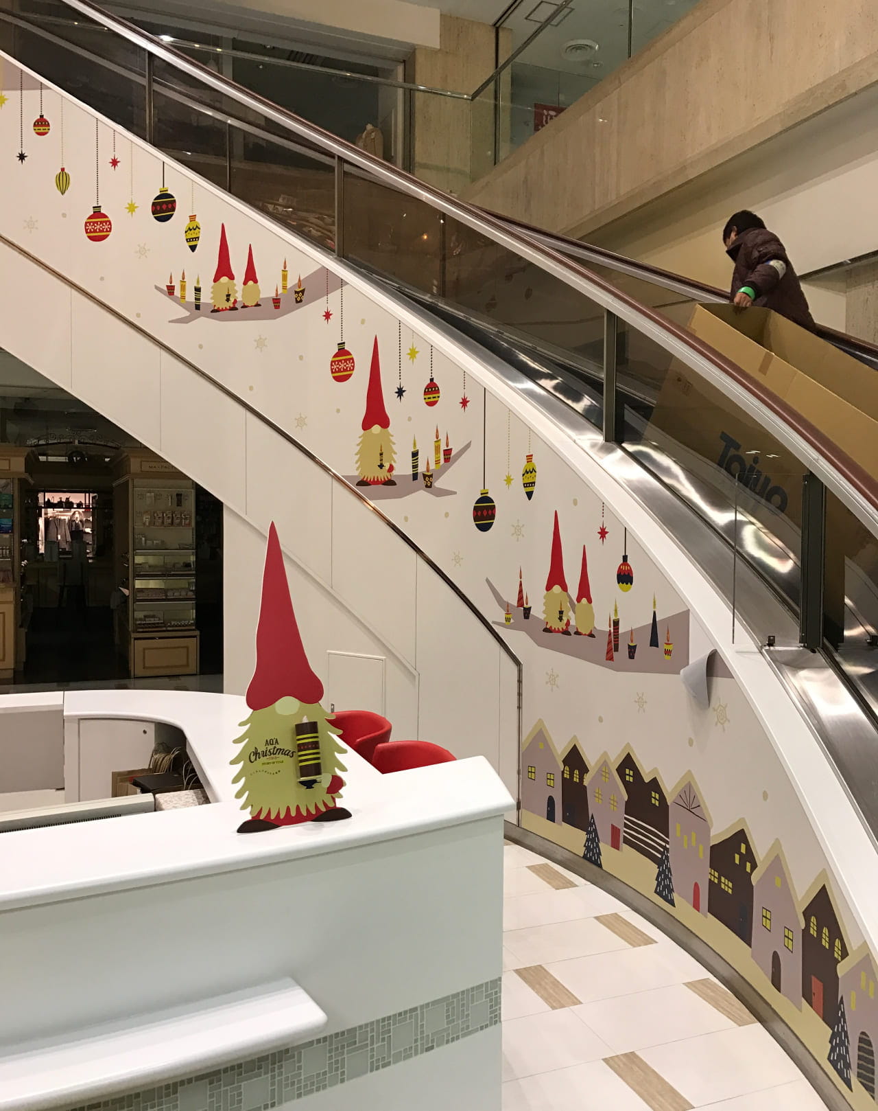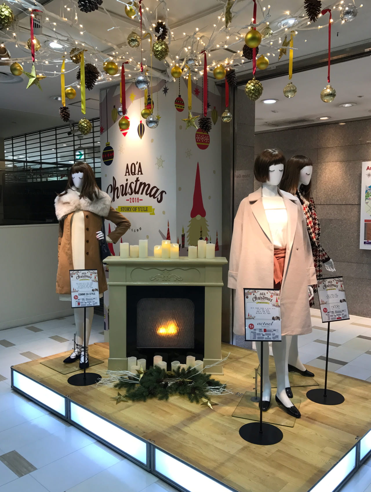 AQ’A広島のクリスマス2016年では、「STORY OF YULE」を提案し、広告デザイン・装飾デザインの施工を担当しました。