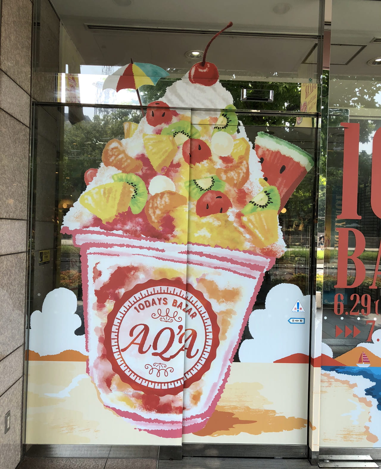 AQ’A広島の2018年夏の「10 DAYS BAZAR」では、サマースイーツをモチーフにしたデザインコンセプトを提案し、広告デザイン・装飾デザイン・施工を担当しました。