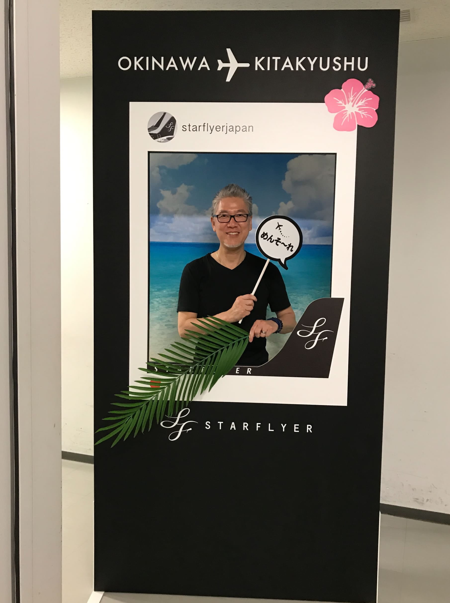 北九州空港の沖縄便就航を記念して、カウンター横にフォトスポットを設け、デザインと施工を担当しました。